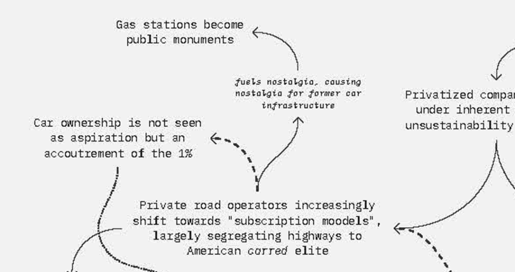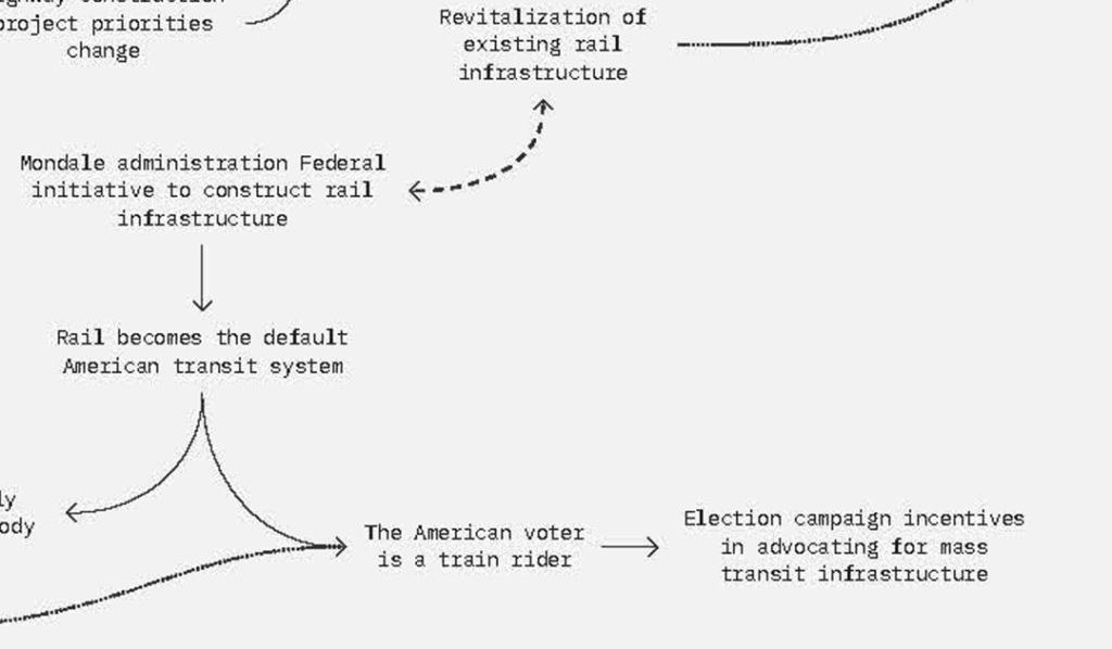 Contingencies surrounding the 1973 Oil Crisis serve as the conditions for our counterfactual game. OPEC’s oil embargo on the US and the Netherlands drove rapid and dramatic change in the ways in which fuel was consumed between 1973 and 1974. Fuel rationing, lower speed limits, and car-free mandates on mobility were suddenly on the table as ways to radically reduce dependence on cheap fossil fuels. While the impact of the crisis was lasting in its global impact, negotiations with OPEC in 1974 resulted in a lifting of the embargo. Ultimately, the impact on patterns of mobility and fuel use in the US were not dramatically altered.