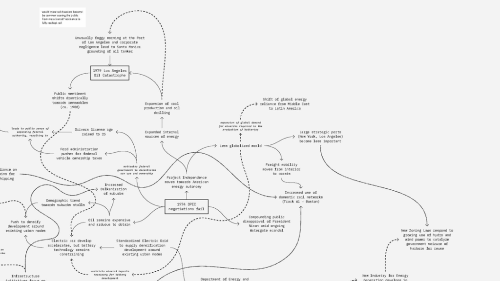 What if the 1974 OPEC negotiations failed, developing into a longer-lasting embargo? How would the disposition of urban infrastructure have evolved differently in a condition of forced decarbonization?